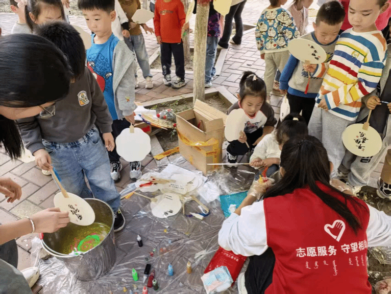 “非遗拾趣·邻里手作工坊”里,师大青年志愿者带领居民和孩子做漆扇、冰箱贴,还展出摄影、绘画作品,让传统文化在社区火了起来。志愿者们还通过各种宣传公益项目,让慈善的暖流在社区涌动。