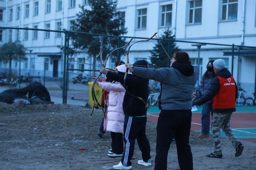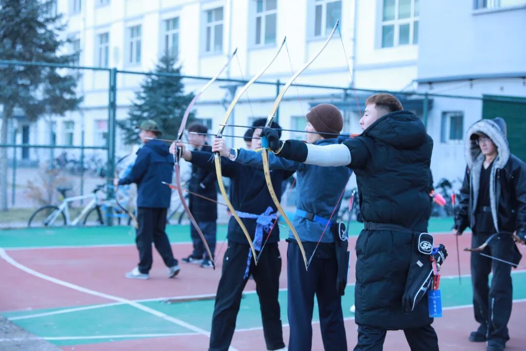 传统弓射箭:弦拉满弓,操场演绎 “百步穿杨”