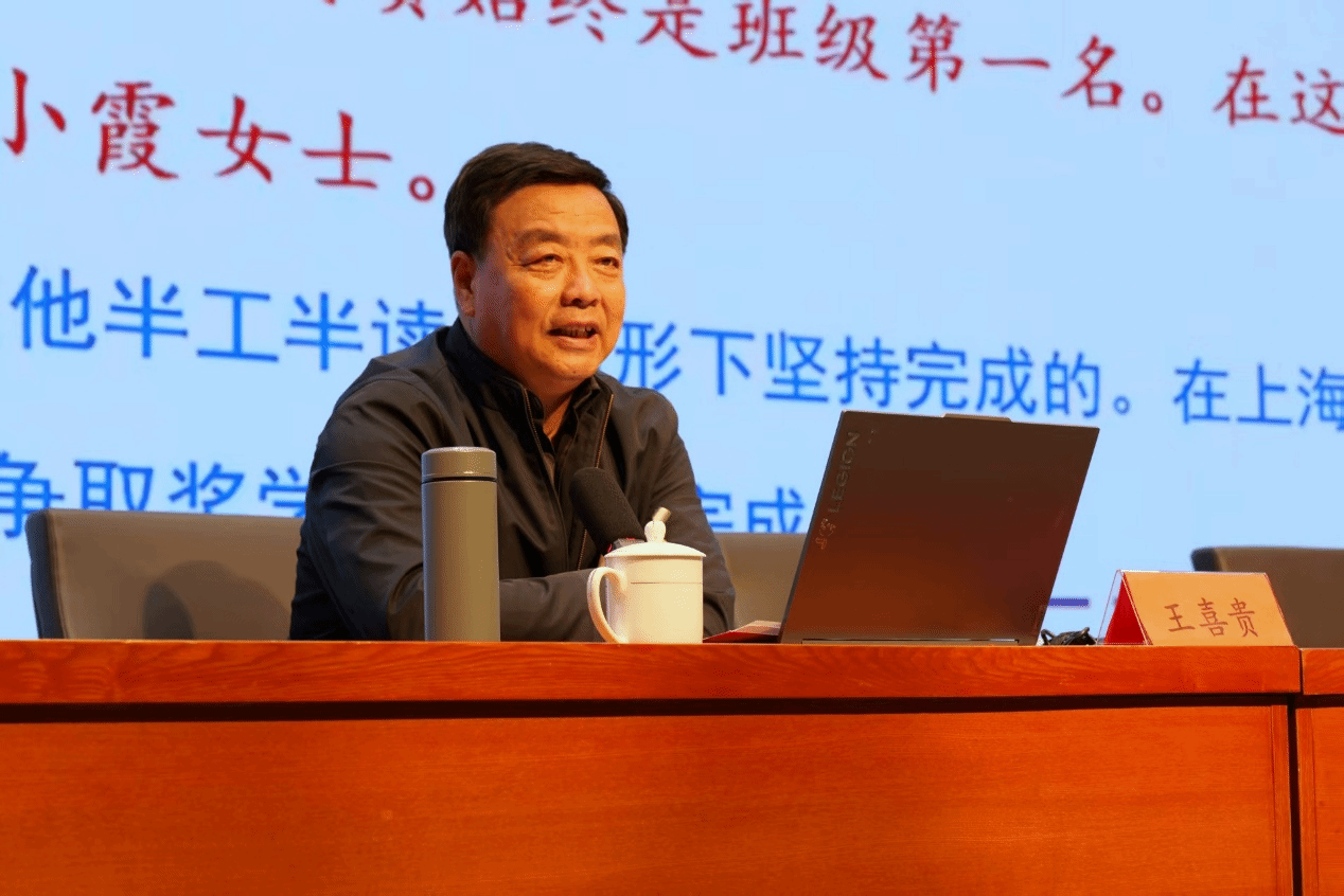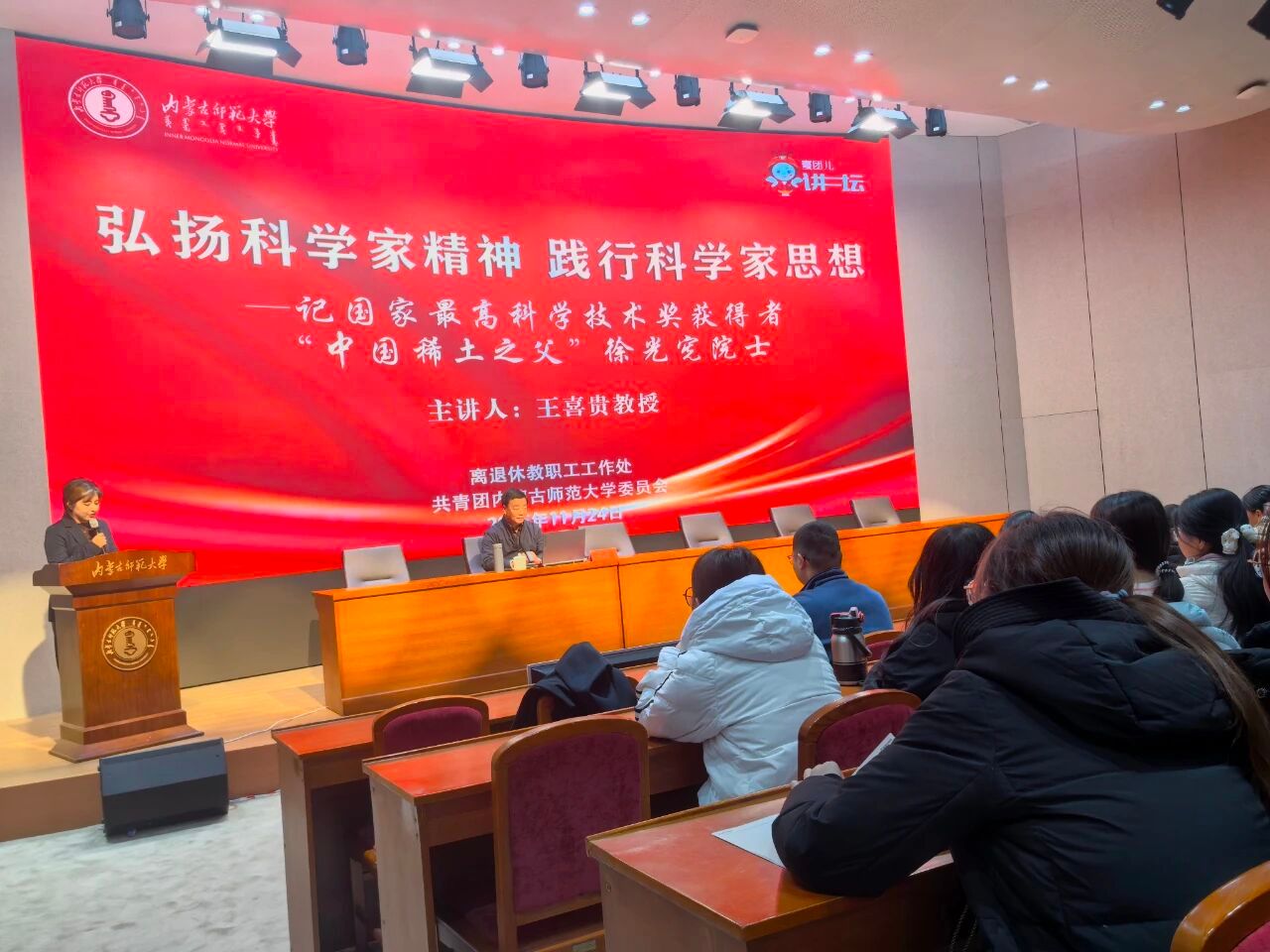 11月24日,内蒙古师范大学硕士研究生导师王喜贵教授以“弘扬科学家精神 践行科学家思想——记国家最高科学技术奖获得者‘中国稀土之父’徐光宪院士”为题作专题宣讲辅导报告。通过线上线下学习两校区共有300余人聆听宣讲报告。