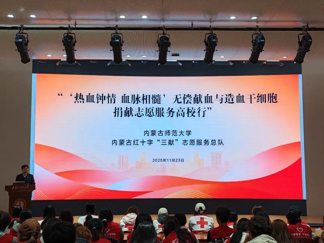 为深入贯彻落实健康中国战略,弘扬“人道、博爱、奉献”的红十字精神,推动无偿献血和造血干细胞捐献事业在高校广泛深入开展,增强青年学生的社会责任感和志愿服务意识,11月23日,自治区红十字会、教育厅、卫健委、团委“‘热血钟情 血脉相髓’无偿献血志愿服务高校行”走进内蒙古师范大学,开展“生命教育”主题宣讲。