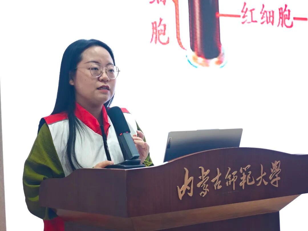 自治区红十字会捐献服务中心丁瑶老师讲解“‘热血钟情 血脉相髓’无偿献血与造血干细胞捐献志愿服务高校行”的相关知识。她从专业角度出发,用通俗易懂的语言解答了关于献血的种种疑问,让大家对捐献过程有了更科学的认识。