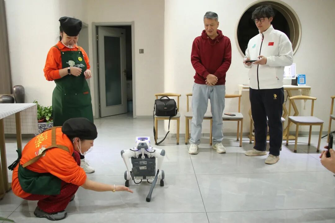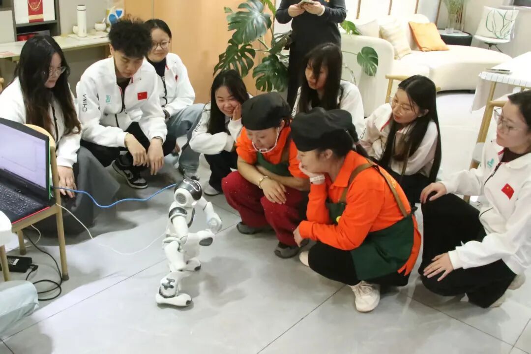 志愿者与残障人士亲切交流、互动游戏,开展科技体验展示。志愿者现场演示NAO智能机器人行走、语音交互等功能,邀请残障人士近距离触摸操作、与机器人对话交流,让残障群体直观感受科技魅力。随后,志愿者与残障人士共同煮制、品尝饺子,在烟火气中深化情感联结。