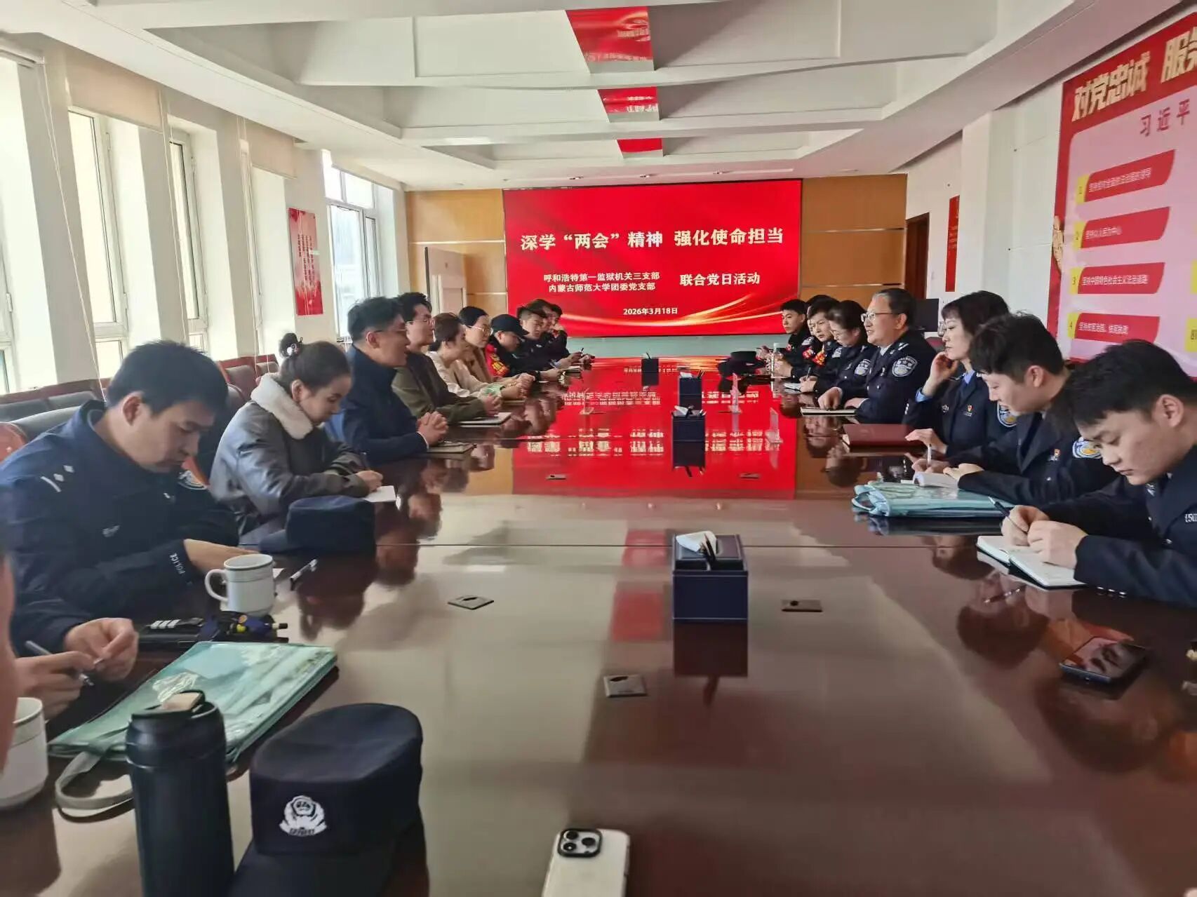 为深入学习全国两会精神,进一步强化党员责任担当,3月18日,校团委党支部、呼和浩特市第一监狱党支部联合开展“深入两会精神 强化使命担当”主题党日活动。