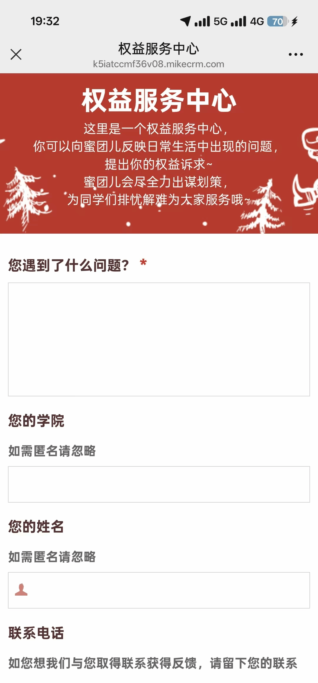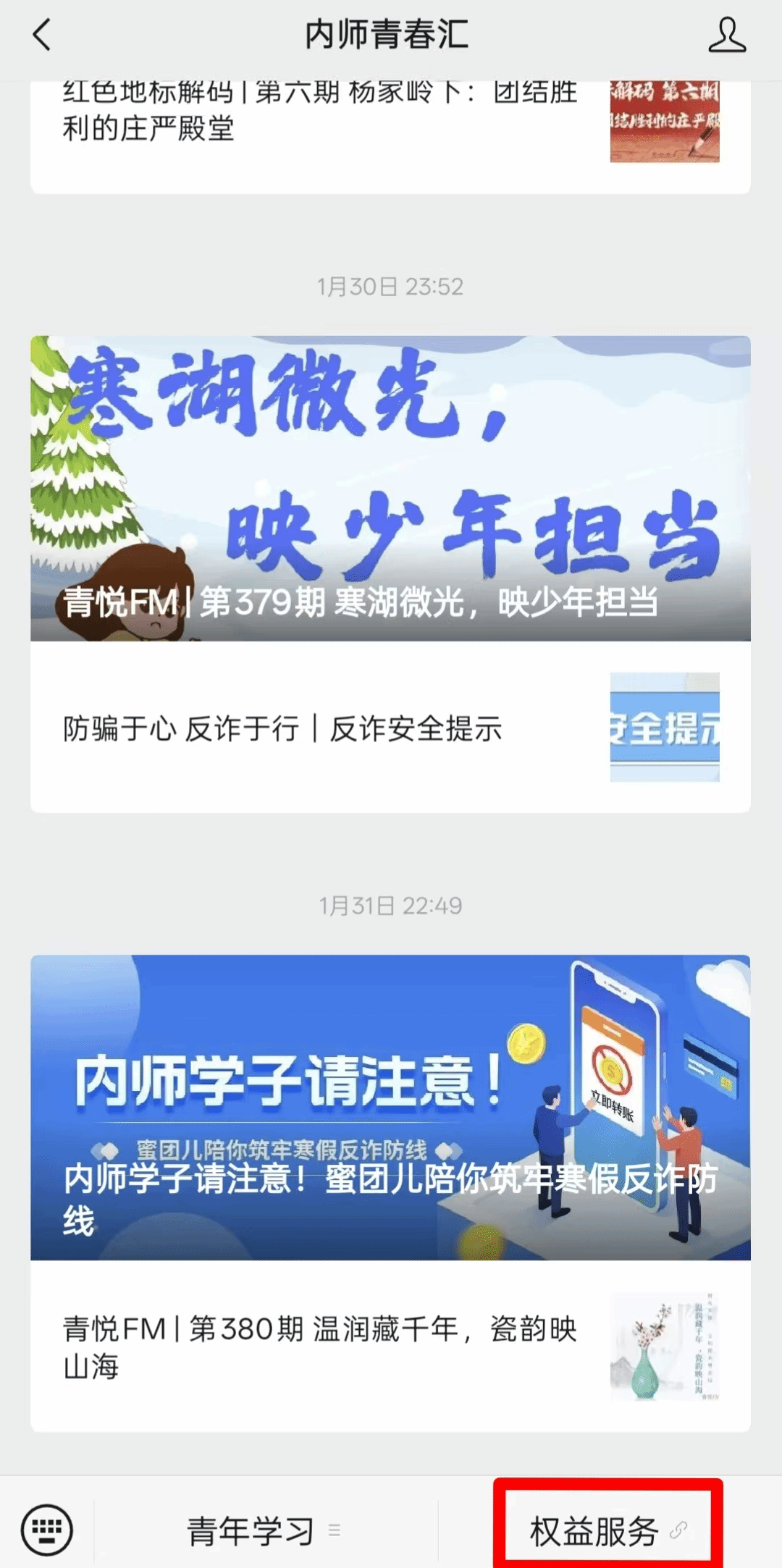 线上通过「内师青春汇」微信公众号设有权益服务专属入口,广泛收集同学们在校学习、生活中的问题困惑与优化建议。